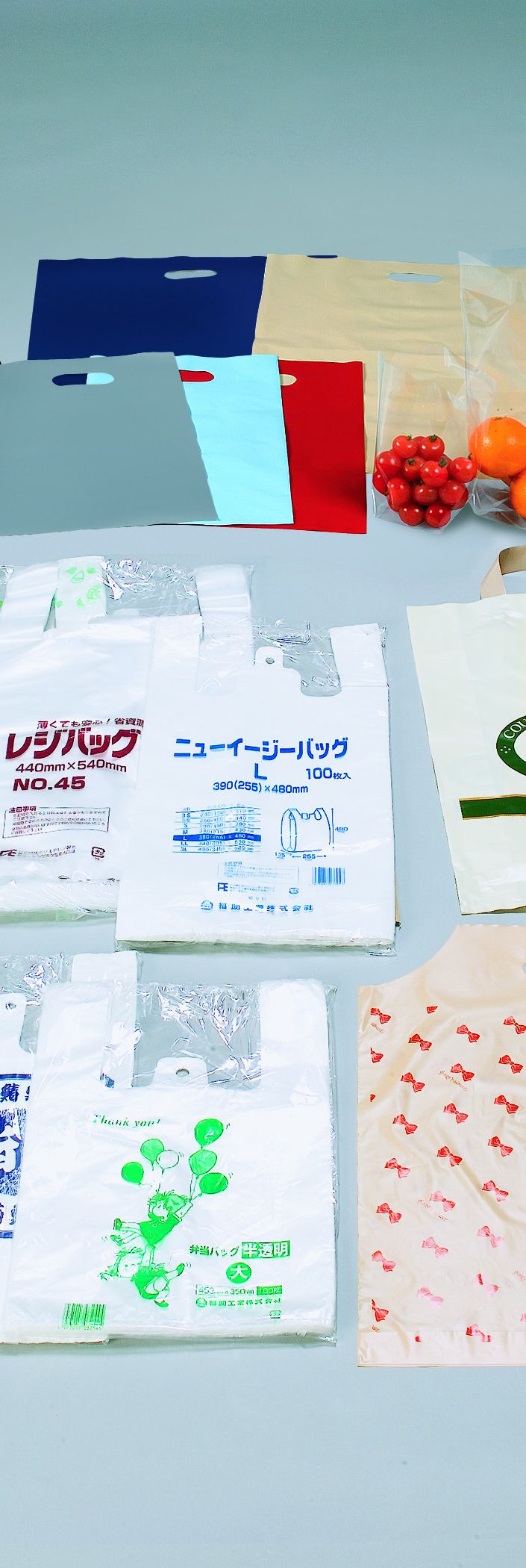 レジ袋、ゴミ袋、ラミネート袋、OPP袋、防曇袋、フラワー袋、チャック袋、別注袋、鮮度保持袋